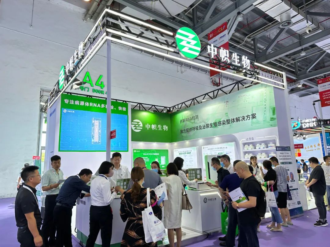 展会现场,中帜生物展台人气爆棚,不仅展出了中帜呼吸道多联检、快检项目,同时推出了RNA分子POCT检测系统及泌尿生殖系列新产品,其中RNA分子POCT检测系统尤为惹眼,吸引了现场许多观众驻足观看、咨询交流,该设备基于独家专利“RNA恒温扩增-金探针层析技术”,结合微流控芯片技术打造而来,可以实现核酸扩增、结果分析一站式检测,其优势不仅可以实现样本进、结果出,最快30分钟出结果,随到随检,同时可以灵活配置通道,覆盖包括呼吸道、泌尿生殖等多领域的项目。